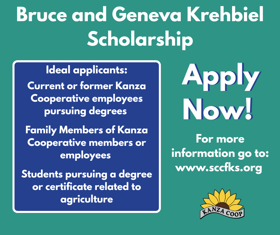 Applications are now open for the 2026 Bruce and Geneva Krehbiel Scholarship. In partnership with the South Central Community Foundation, Kanza is proud to support members of the Kanza community as they further their education.